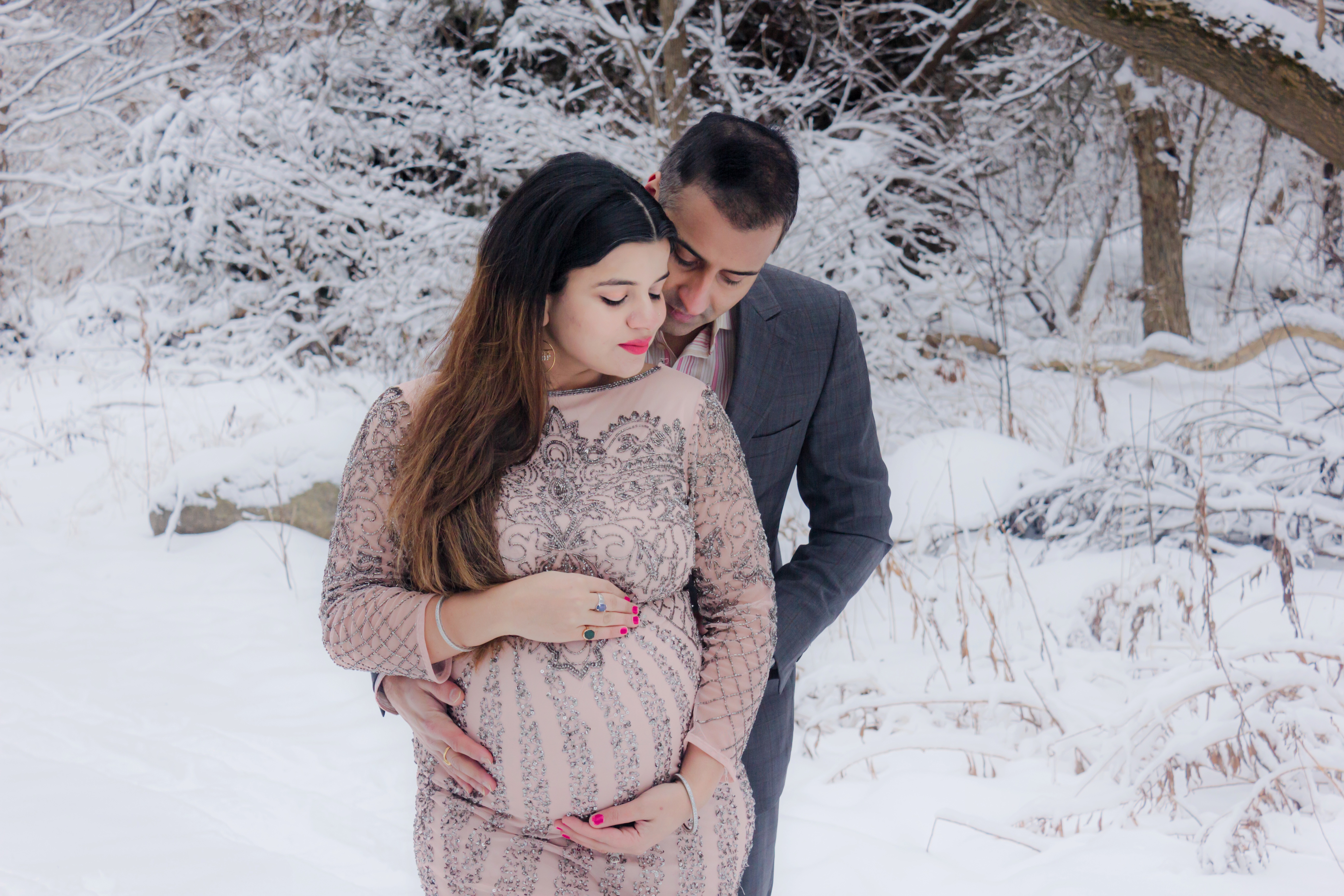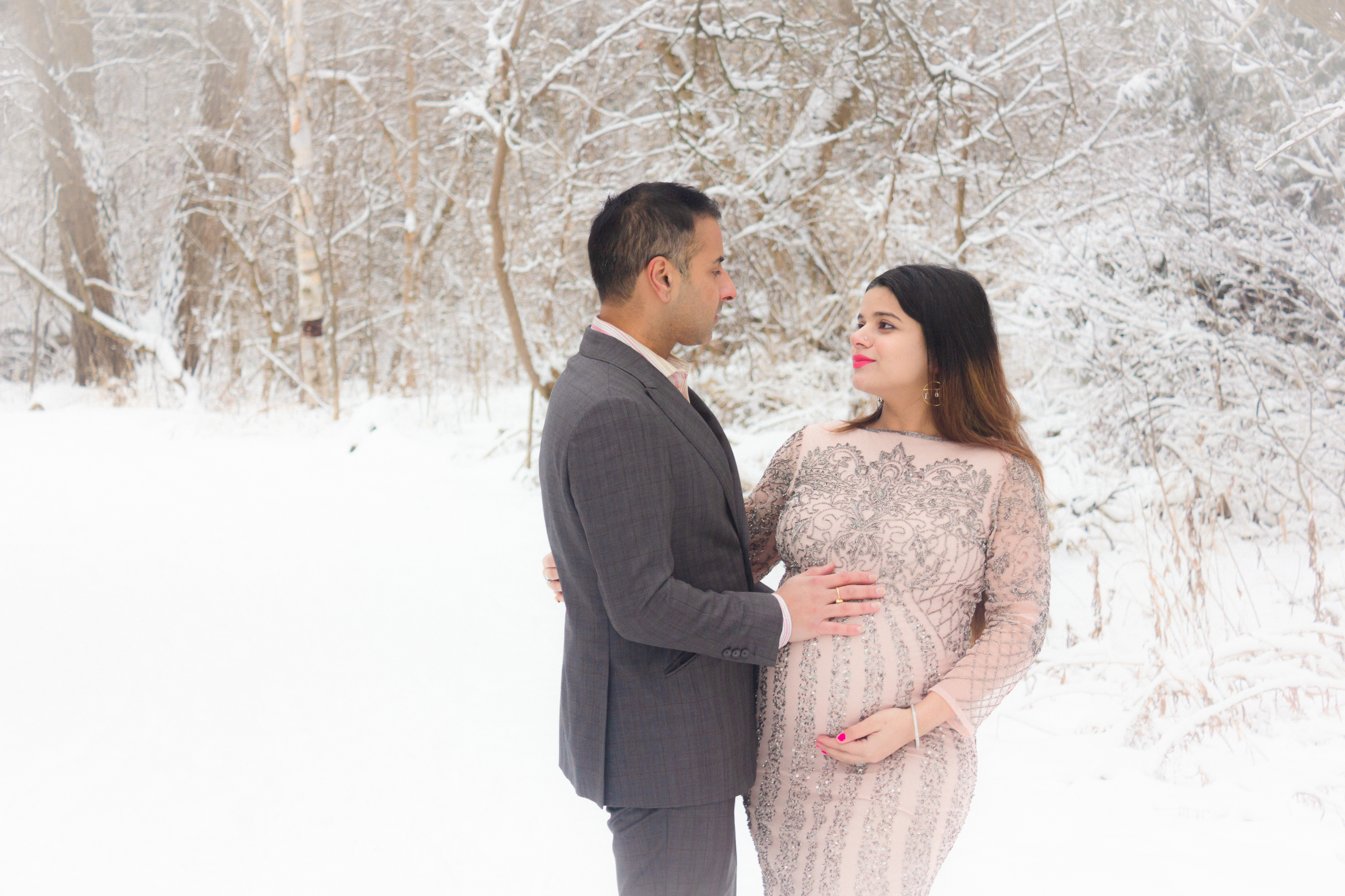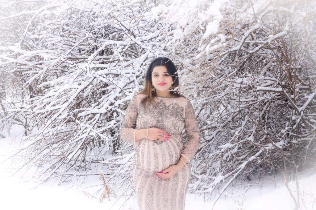 If you already know me through my socials , you know photoshoots are my thing. However for my pregnancy, I did’nt end up planning any photoshoot due to so much happening in the world, I did not even want to come in contact with a photographer and just keep my distance and stay safe. However when the 9 month hit, I realised how these moments are so precious and we got to capture them. So our first attempt was a backyard photoshoot with my husband and a tripod, it turned out pretty awesome I think, if you want to check it out you can click here. But the problem was that It was just me and I wanted my husband to be in to too. So the next attempt we decided to do an outdoor shoot with our friend Munir, who is also amazing at taking photos, it was a random plan on the same day that turned into a photoshoot in a snowstorm. If you wish to check out that you can click here. The shoot turned out good but before I even saw the final results I was convinced I also needed something in the day that shows the beautiful snow backdrop. So finally this wa sour third and last attempt at getting photos of both of us together as a couple in Sunlight.