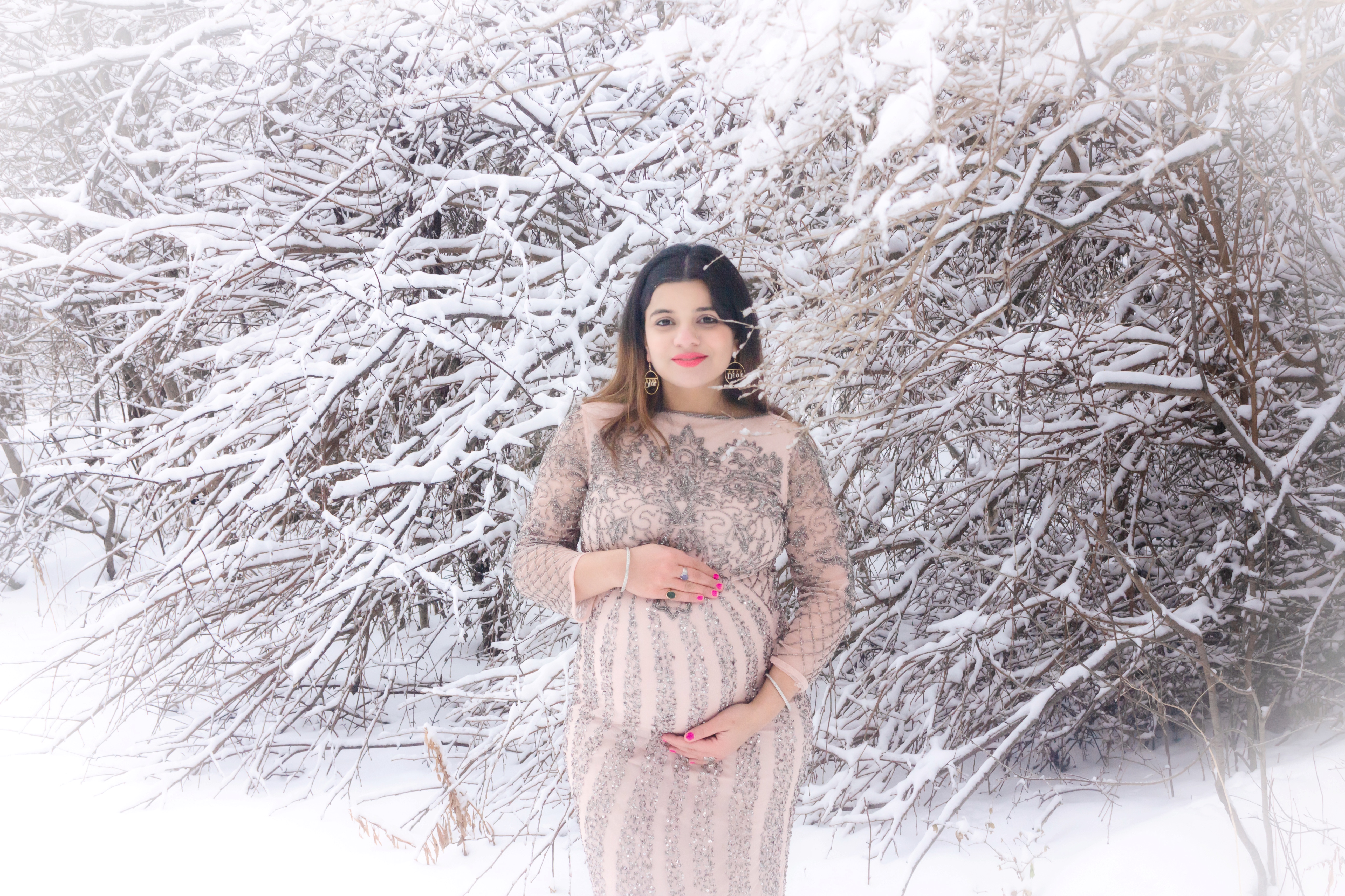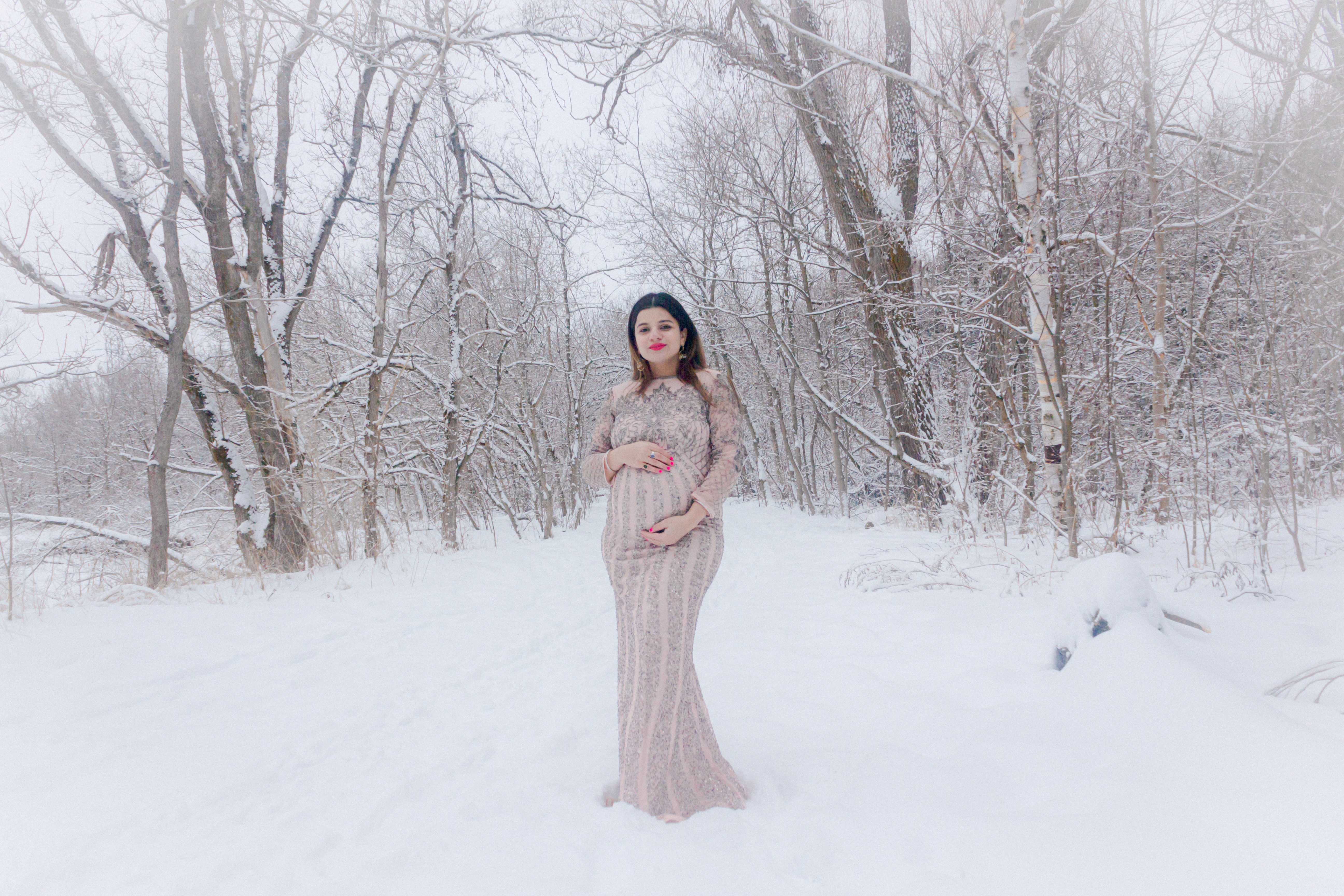 It was -7 degrees and we went to Bindertwine park in kleinburg for this shoot. We both enjoy walking this trail so much in the summer so we thought of doing the shoot here. I loved how the snow had gathered around the trees and thought it would be a perfect backdrop for the pictures.